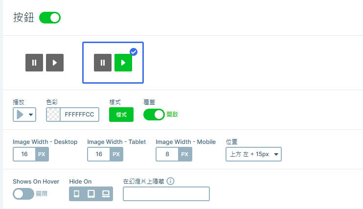 當焦點遊走至橫幅輪播圖片功能上能出現焦點定位,在其CSS增加以下設定